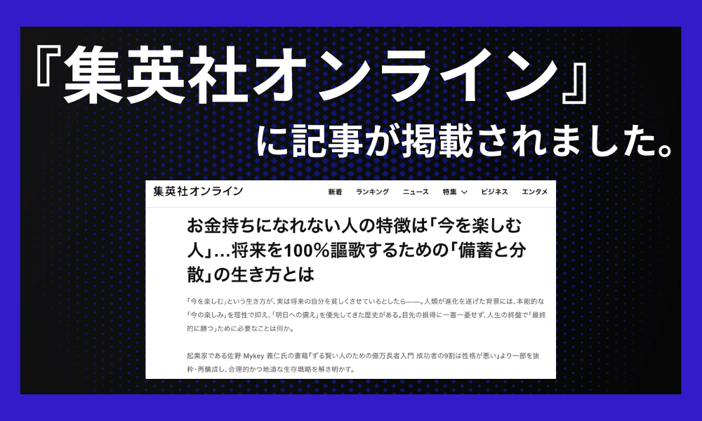 集英社オンラインにて|お金持ちになれない人の特徴は「今を楽しむ人」…将来を100%謳歌するための「備蓄と分散」の生き方とは|が掲載されました!